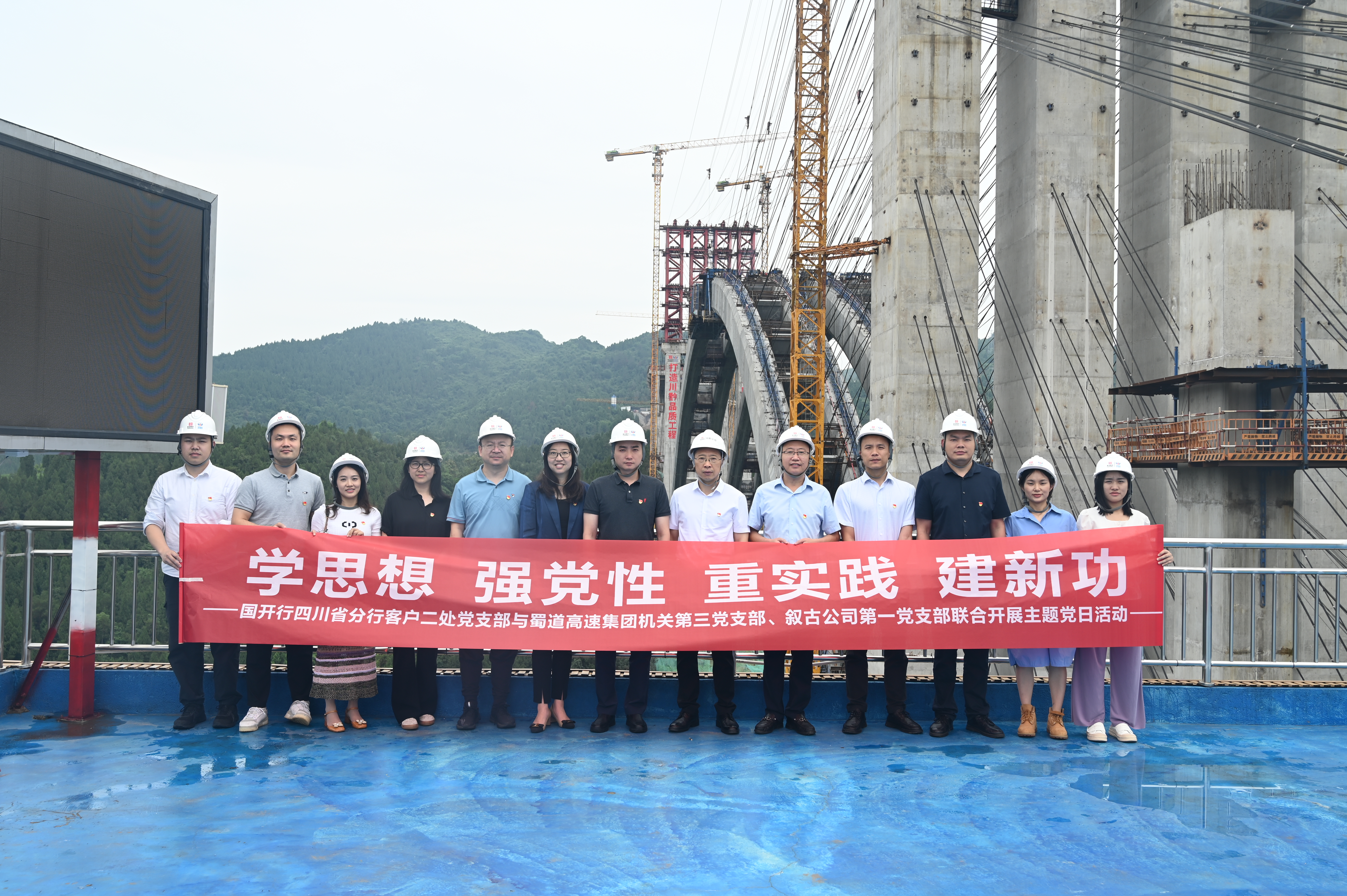 8日下午,參加活動的全體黨員赴古金高速水落河特大橋施工現場、四川省首個標準化產業工人園、古金高速智慧梁場和產業工人培訓中心參觀學習,詳細了解了水落河特大橋超級工程的智慧建造情況、產業工人隊伍建設改革試點工作情況,增強了對蜀道勞動精神、勞模精神、工匠精神的情感認同,深化了對偉大祖國建設日新月異的精神自豪。