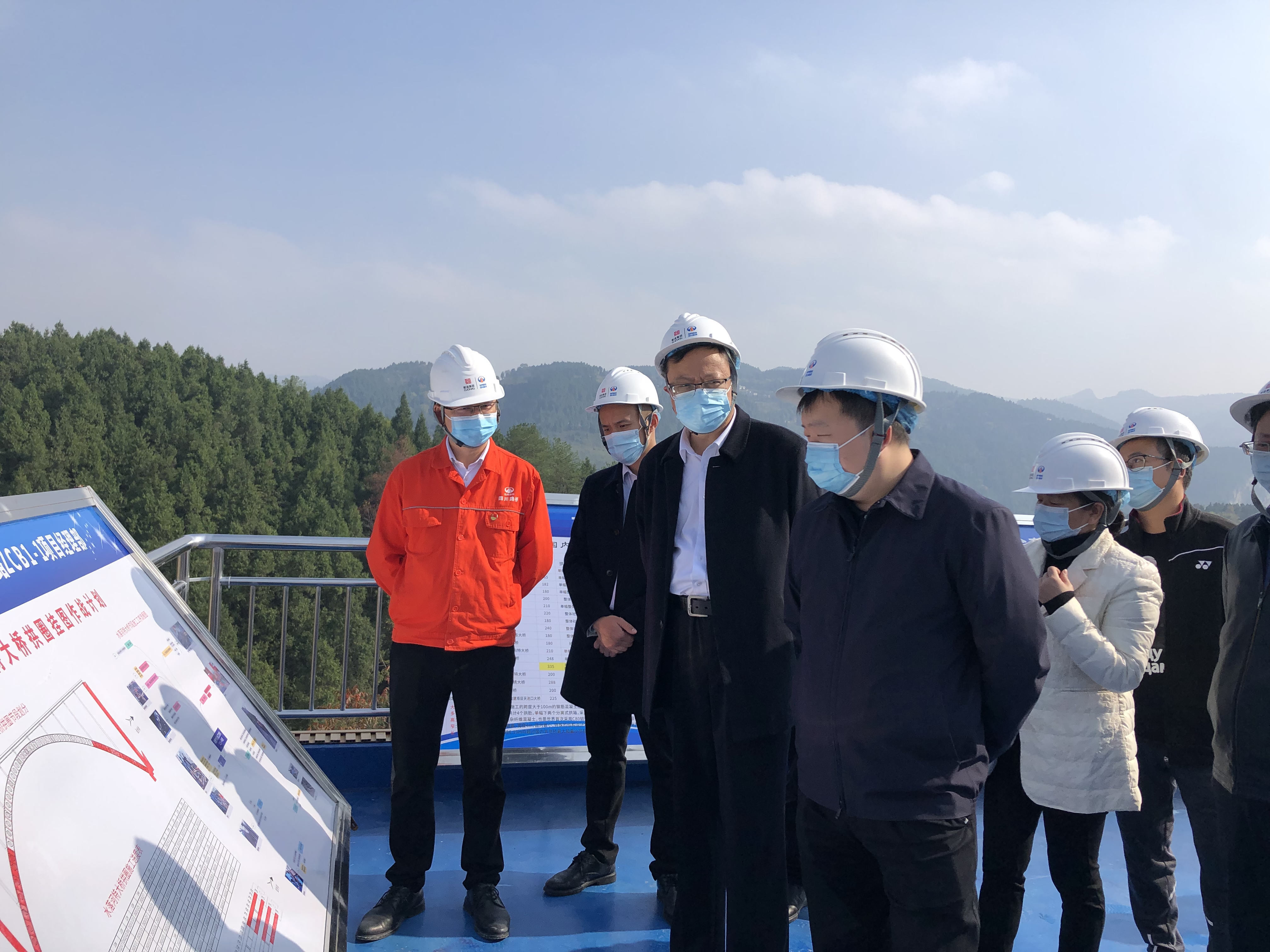 葛洪亮一行先后前往水落河特大橋施工現場、智慧控制中心及產業工人園,查看現場安全防護及高空作業情況,聽取項目整體概況、安全文明施工及疫情防控工作的匯報,并到ZCB1-1項目經理部開展疫情防控檢查工作。